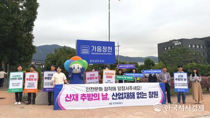 한국시사경제 윤경수 기자 | 창원특례시는 24일 가음정사거리 일대에서 창원국가산단 중대재해 예방을 위해 ‘산재 추방 홍보의 날’ 캠페인을 펼쳤다.