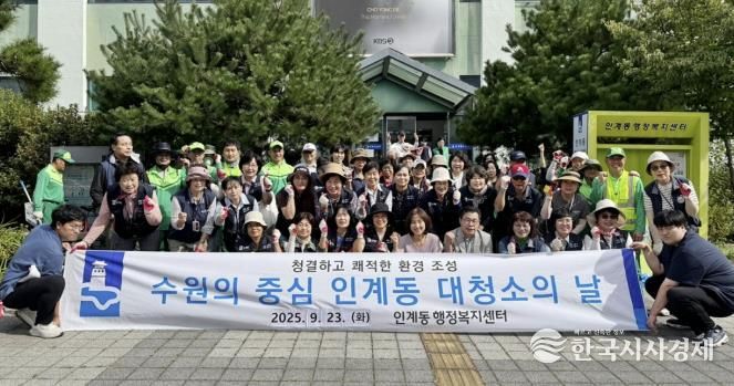 한국시사경제 사회팀 | 수원시 팔달구 인계동은 지난 23일 오전, 인계동 수원시청 부근 인계박스 및 장다리로 일대 등 화단과 대로변을 중심으로 인계동 단체, 환경 관리원 및 주민 등 70여 명과 함께 추석맞이 일제 대청소를 실시했다.