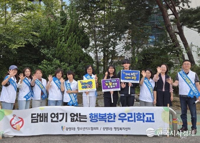 한국시사경제 경기취재본부 | 광명5동 청소년지도협의회는 지난 23일 광남중학교에서 위원과 광명5동 주민센터 직원 등 13명이 참석한 가운데 청소년 금연 캠페인을 펼쳤다.