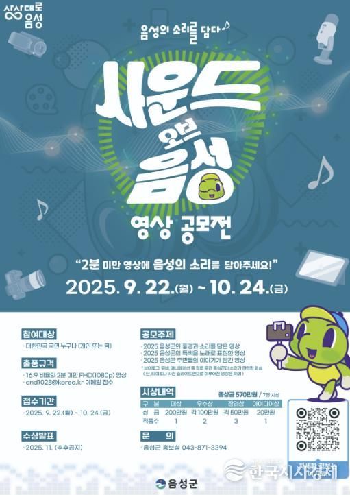 한국시사경제 오영주 기자 | 음성군은 오는 10월 24일까지 2025 사운드 오브 음성 영상 공모전을 개최한다고 밝혔다.