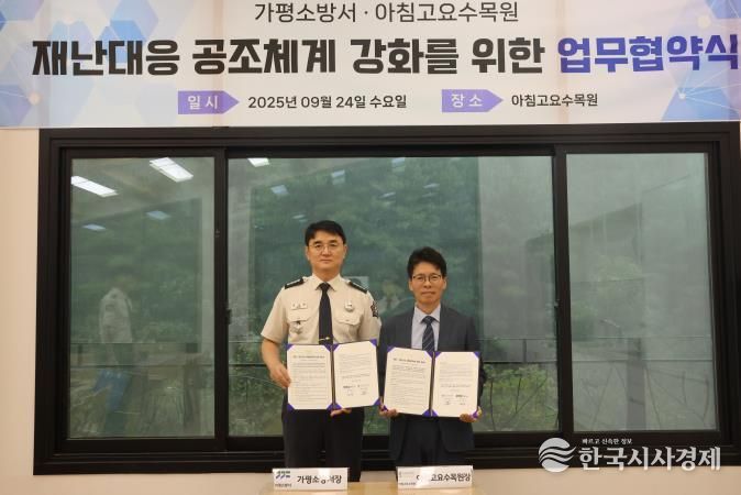 한국시사경제 오영주 기자 | 가평소방서는 지난 24일 아침고요수목원과 재난·재해 대응 역량 강화 및 지역사회 안전문화 정착을 위한 업무협약(MOU)을 체결했다고 밝혔다.