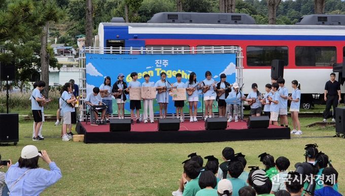 진주시 탄소중립지원센터(센터장 기서진 경상국립대학교 환경공학과 교수)가 주관하고 진주시와 진주교육지원청이 공동 주최한 ‘진주 그린 투게더(Green Together)’ 행사가 9월 23일 진주철도문화공원에서 성황리에 개최됐다.