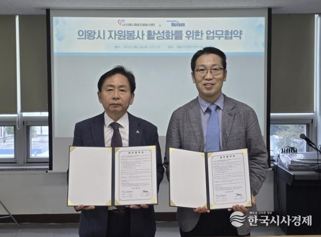 한국시사경제 권충현 기자 | (사)의왕시종합자원봉사센터는 현대로템(주)과 9월 23일 센터 교육장에서 자원봉사 활성화를 위한 업무협약(MOU)을 체결했다.