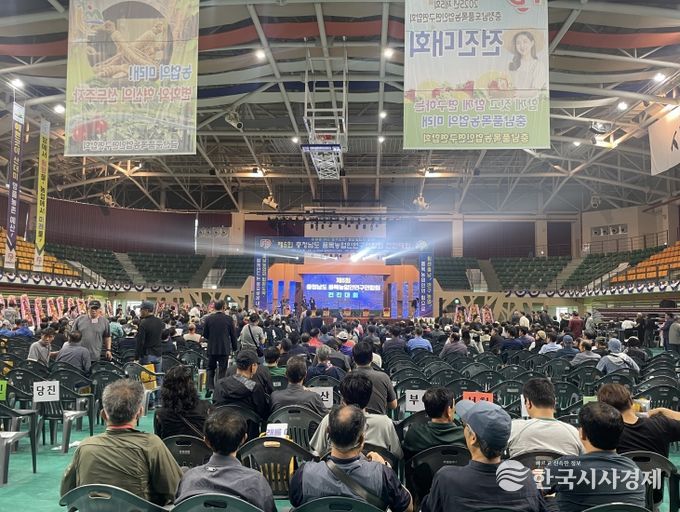 한국시사경제 김태훈 기자 | 제5회 충남도품목농업인연구연합회 전진대회가 ‘미래를 여는 품목농업, 충남농업의 도약’이라는 주제로 지난 25일 금산종합체육관에서 열렸다.