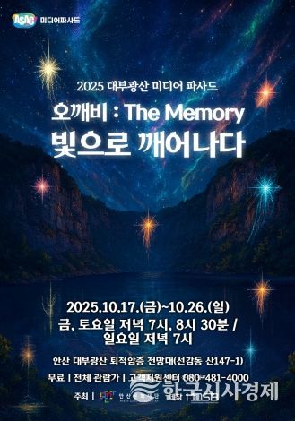 한국시사경제 문화팀 | 안산문화재단이 오는 10월 17일부터 26일까지 매주 금·토·일 총 6일간 안산 대부광산 퇴적암층 전망대에서 특별한 야외 공연 ‘오깨비 : The Memory, 빛으로 깨어나다’를 선보인다. 이번 공연은 매주 금요일·토요일 오후 7시와 8시 30분, 일요일 오후 7시에 진행되며, 모든 프로그램은 무료로 관람할 수 있다.