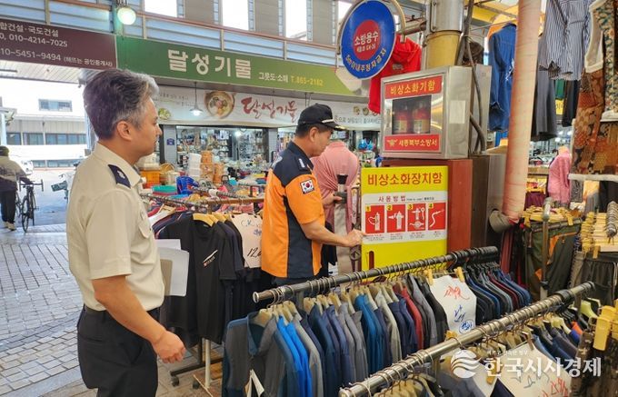 한국시사경제 오영주 기자 | 세종북부소방서가 지난 26일 추석 명절을 앞두고 세종전통시장과 전의왕의물시장에서 화재 안전을 점검했다.