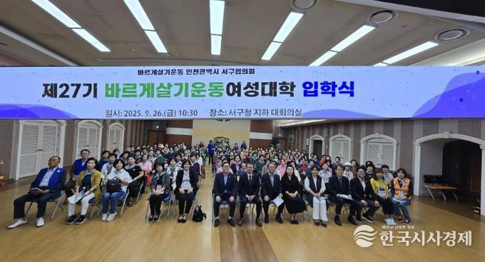 한국시사경제 사회팀 | 바르게살기운동 인천 서구협의회는 9월 27일 서구청 대회의실에서 ‘제27기 바르게살기운동 서구여성대학 입학식’을 개최했다.