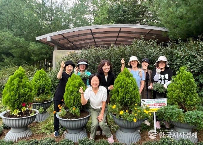한국시사경제 사회팀 | 수원시 영통구 망포 1동 행정복지센터는 29일 오전 망포1동 손바닥정원단과 함께 가을을 맞이하여 하반기 관내 손바닥정원 식재 작업을 실시했다.