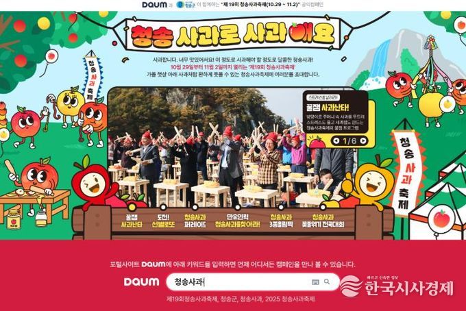 한국시사경제 이정이 기자 | 청송군은 29일부터 포털사이트 다음(daum)에서 11월 2일까지 '제19회 청송사과축제' 온라인 축제를 개최한다.
