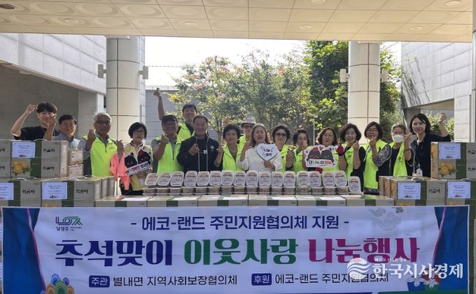 이번 과일 선물세트는 에코랜드 주변지역 주민지원협의체(위원장 이영근)의 주민지원사업 기금으로 마련됐다. 남양주시자원봉사센터(북부분소) 주관으로 별내면 생활개선회와 자원봉사단 회원들이 정성껏 만든 모둠전도 함께 전달돼 추석의 따뜻한 정을 나누는 의미 있는 시간이 됐다.