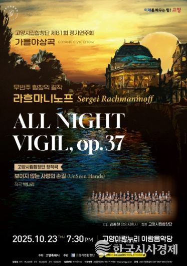 한국시사경제 윤광희 기자 | 고양특례시는 문화예술의 발전을 선도하는 고양시립합창단이 오는 10월 23일 오후 7시 30분, 고양아람누리 아람음악당에서 제81회 정기연주회 ‘가을 야상곡 Autumn Nocturne’을 개최한다고 밝혔다.