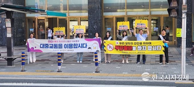 한국시사경제 부산취재본부 | 부산진구는 추석을 맞아 24일, 25일 이틀에 걸쳐 보행자 통행량이 많은 부전시장과 서면롯데백화점 앞에서 ‘무단횡단 금지, 교통안전 캠페인’을 실시했다.