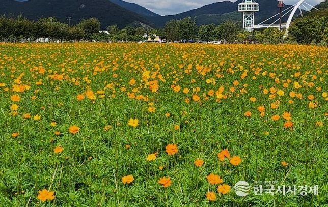 한국시사경제 윤경수 기자 | 가을의 시작과 함께 양산 황산공원 중부광장이 황화 코스모스로 물들었다. 청명한 가을 하늘을 배경으로 활짝 핀 황화 코스모스는 사진 촬영 명소로 인기를 끌고 있다.