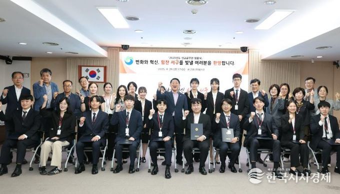한국시사경제 대전취재본부 | 대전 서구는 지난 29일 구청 장태산실에서 2025년도 지방직 공채 시험에 합격한 신규 임용 공무원 19명에게 임용장을 수여하며 공직자로서의 첫 발걸음을 축하했다.