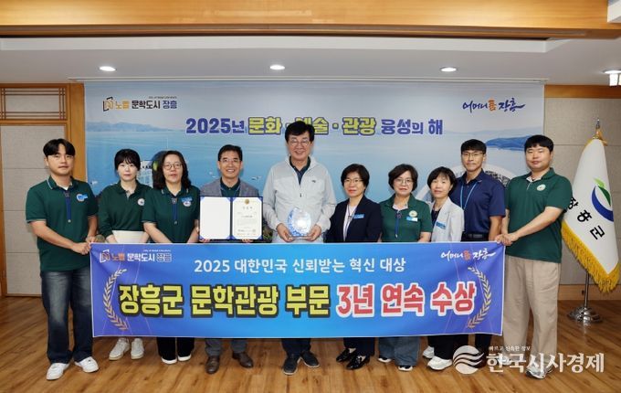 한국시사경제 전남취재본부 | 장흥군이 9월 29일 개최한 ‘2025 대한민국 신뢰받는 혁신대상’시상식에서 문학관광 부문 공공혁신 대상을 수상했다고 밝혔다.