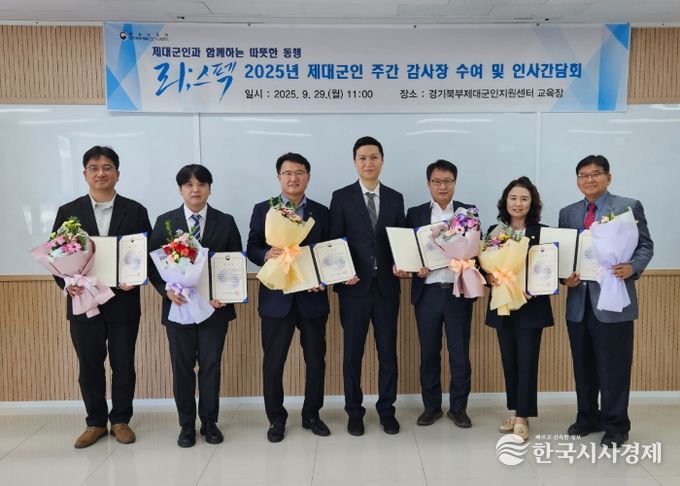 한국시사경제 문화팀 | 경기북부보훈지청 제대군인지원센터는 지난 29일 오전 11시, 센터 교육장에서 ‘2025년 제대군인 주간 기념 고용우수기업 감사장 수여식 및 인사간담회’ 를 개최했다.