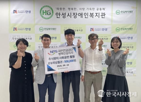 한국시사경제 경기취재본부 | 사회복지법인 한길복지재단에서 수탁하고 있는 안성시장애인복지관은 지난 9월 29일 국민연금공단 평택안성지사로부터 사회공헌활동으로 50만원 상당의 온누리 상품권을 후원받았다고 밝혔다.