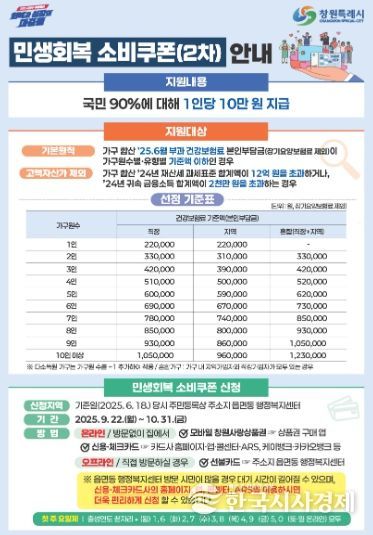한국시사경제 문화팀 | 창원특례시는 추석 명절을 앞두고 민생회복 소비쿠폰 2차 지급을 통해 지역경제에 활력을 불어넣고 소상공인들에게 힘을 보내고 있다. 이번 2차 지급 대상은 총 91만 5,548명으로, 9월 22일부터 지급이 시작된 지 며칠 만에 벌써 84.5%에 해당하는 77만 3,719명이 발급받아 시민들의 높은 관심을 입증했다.