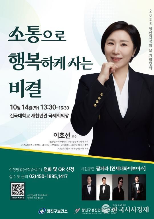 한국시사경제 윤광희 기자 | 광진구는 오는 10월 14일 ‘정신건강의 날(매년 10월 10일)’을 맞아 건국대학교 새천년관 국제회의장에서 광진구정신건강복지센터 주관 기념 강좌를 개최한다.