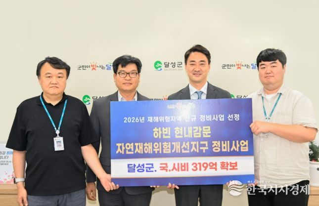한국시사경제 대구취재본부 | 달성군은 행정안전부가 주관하는 ‘2026년 자연재해위험개선지구 정비사업 신규사업’에서 하빈 현내감문지구가 최종 선정돼 국·시비 319억 원을 확보했다고 밝혔다.