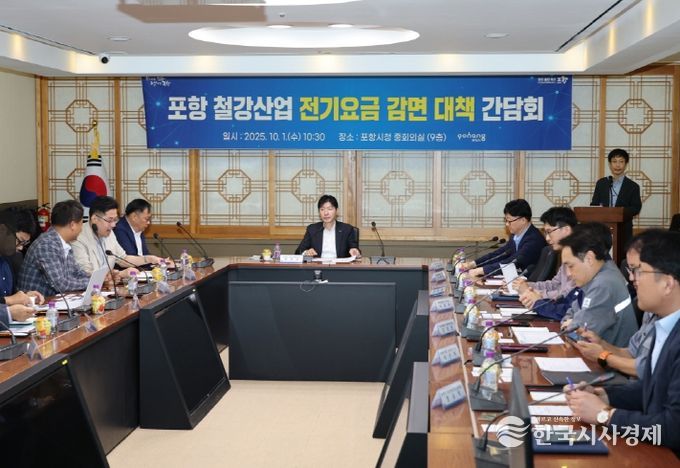 한국시사경제 한장선 객원기자 | 포항시는 1일 시청 중회의실에서 철강산업 위기 극복을 위한 ‘산업용 전기요금 감면 대책 간담회’를 열고 전기요금 인하와 에너지 효율 혁신 방안을 논의했다.