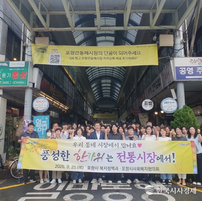 지난 9월 25일, 복지정책과와 포항시사회복지협의회 회원 50여 명은 포항큰동해시장에서 장보기를 하고 인근 식당에서 점심 식사를 함께하며 전통시장에 활기를 불어넣었다.