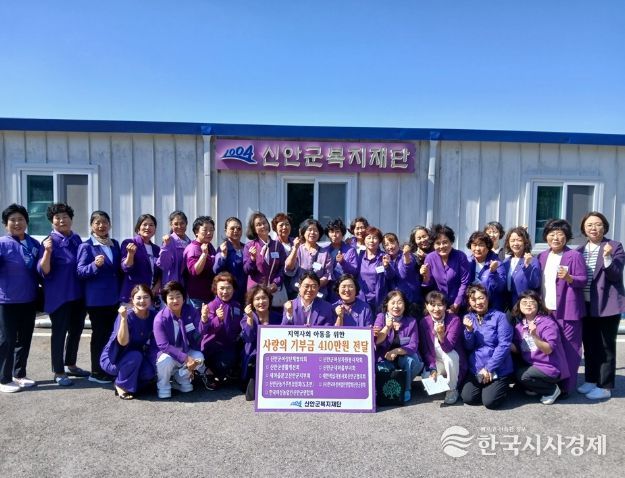 한국시사경제 문화팀 | 신안군 지역 복지 발전에 앞장서고 있는 신안군여성단체협의회(회장 안미영)를 비롯한 9개 여성 관련 단체 임원 32명은 1일 신안군복지재단(이사장 강정희)을 방문해 ‘어린이집 연합 한마음 대회’ 지원을 위한 기부금 410만 원을 쾌척하며 지역사회 어린이들을 위한 나눔을 실천했다.