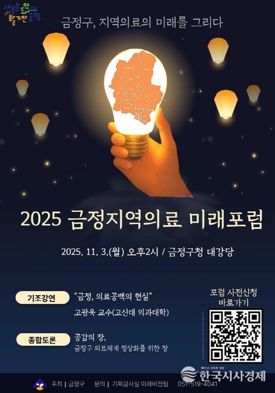 한국시사경제 윤경수 기자 | 부산시 금정구는 오는 11월 3일 금정구청 1층 대강당에서 침례병원 파산 이후 지속되어 온 지역 의료공백 문제를 논의하고 의료체계 정상화 방안을 모색하기 위해 '금정 지역의료 미래 포럼'을 개최한다.