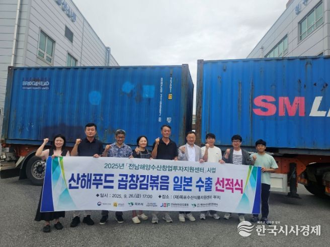 한국시사경제 전남취재본부 | (재)목포수산식품지원센터는 9월 26일, 전남해양수산창업투자지원센터 사업 수혜기업인 산해푸드(대표 오시윤)가 일본 바이어와 체결한 2만3천 달러(한화 약 3천2백만 원) 규모의 곱창김 제품 수출 계약에 따라 센터에서 선적식을 개최했다고 밝혔다.
