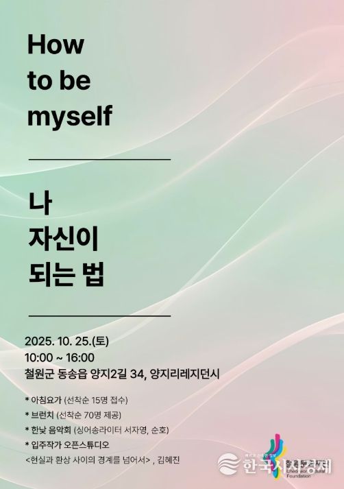 한국시사경제 이정이 기자 | 철원문화재단은 2025년 10월 25일 오전 10시부터 16시까지 양지리 레지던시를 개방해 웰니스 문화행사를 진행한다.