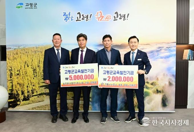 고령군은 지역교육 활성화를 위하여 선뜻 큰 금액을 기탁해주신 농업회사법인(주)나은 김동철 대표님과 건축사사무소 옥토 김종수 대표님께 고마움을 표하고 “어려운 경제여건 속에서도 교육발전을 위해 기탁해주셔서 깊이 감사드린다”며 “기탁해 주신 뜻을 소중히 받아, 우리 학생들이 보다 나은 교육환경에서 성장할 수 있도록 최선을 다하겠다”고 전했다.