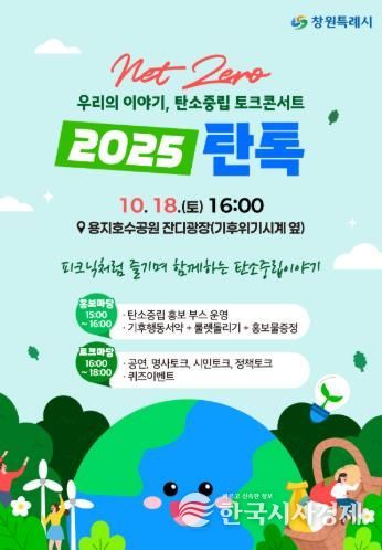 한국시사경제 윤경수 기자 | 창원특례시는 오는 10월 18일 오후 4시 용지호수공원 탄소제로하우스 앞 잔디광장에서 기후위기 대응과 탄소중립 실천 문화를 확산하기 위해 탄소중립 토크콘서트 ‘2025탄톡’을 개최한다.