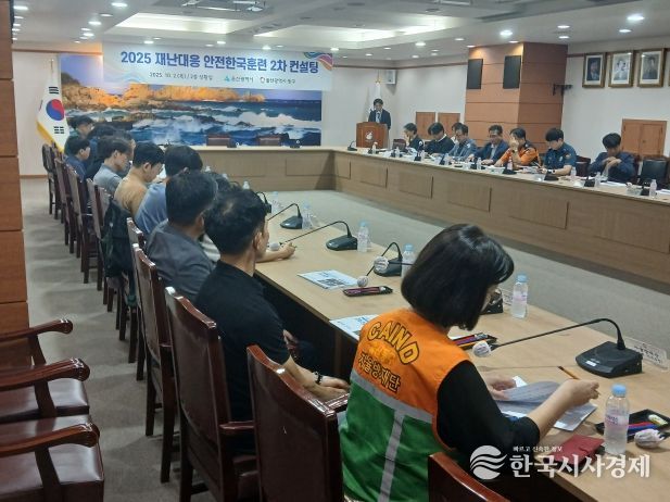 한국시사경제 울산취재본부 | 동구는 10월 2일 오후 2시 동구청 2층 상황실에서 민간 전문가와 울산시, 소방, 경찰, 군부대 등 유관 기관 관계자 25명이 참석한 가운데 2025 재난 대응 안전 한국 훈련 2차 컨설팅을 했다.