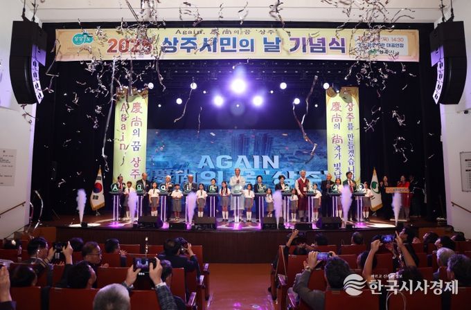 한국시사경제 경북취재본부 | 상주시는 Again, 慶尙의 꿈 ‘상주’를 주제로 한 시민의 날 기념식을 10월 2일 상주문화회관 대공연장에서 개최했다. 상주시민의 날(매년 10월 12일)을 앞두고 개최된 이날 기념식에는 상주시 노인회장과 읍면동 분회장 등 지역 원로들과, 각급 기관·단체장, 출향인 등 500여 명의 시민이 함께해 Again, 慶尙의 꿈의 실현을 향한 염원을 한데 모았다.