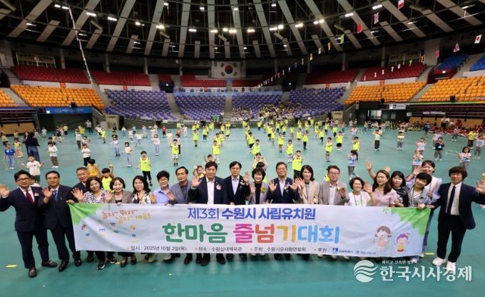 한국시사경제 사회팀 | 수원특례시는 2일 수원종합운동장 수원체육관에서 ‘제3회 수원시 사립유치원 한마음 줄넘기대회’를 열었다.