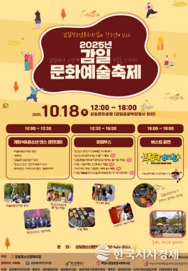한국시사경제 윤광희 기자 | 하남시 감일청소년문화의집은 오는 10월 18일 오후 12시부터 18시까지 감일문화공원(감일공공복합청사 뒷편)에서 '제2회 감일문화예술축제'를 개최한다.