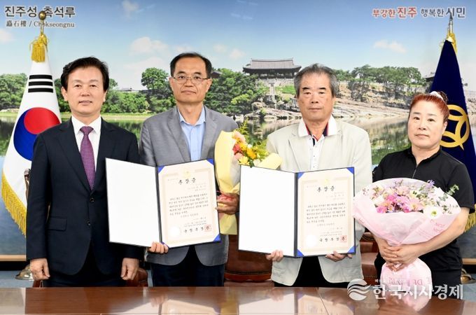 한국시사경제 문화팀 | 진주시는 2일 6·25전쟁 참전 유공자인 ‘故 김판식 일병’과 ‘故 윤도기 일병’의 유가족인 고인들의 조카 김형원, 윤성수 씨에게 각각 화랑무공훈장을 전수했다.