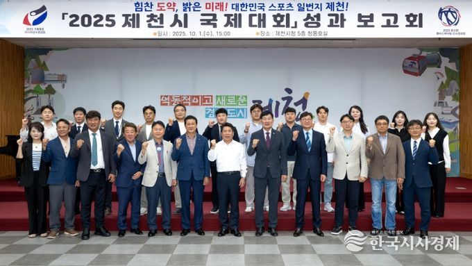 한국시사경제 충북취재본부 | 제천시는 지난 1일 제천시청 5층 청풍호실에서 '2025년 제천시 국제대회'성과보고회를 개최했다. 보고회에는 김창규 제천시장, 박영기 제천시의회 의장, 김경석 대한롤러스포츠연맹 회장(이상 공동조직위원장), 장재돈 대한체조협회 고문과 안성국 제천시체육회장(집행위원장), 오재성 제천시체조협회장, 최호열 제천시롤러스포츠연맹회장(이상 공동 사무총장) 및 유관기관, 단체장 3명과 종목단체 임원 및 회원 50여 명이 참석했다.