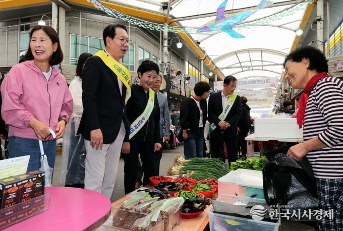 한국시사경제 충북취재본부 | 송인헌 충북 괴산군수가 추석을 앞두고 괴산전통시장을 찾아 상인들과 인사를 나누고 직접 장보기에 나섰다.