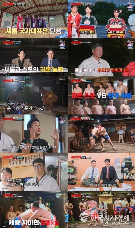한국시사경제 연예팀 | ‘프로 씨름 vs 프로 스모’라는, 방송 사상 최초의 대결을 성사시킨 TV CHOSUN ‘한일슈퍼매치’에서 ‘스모 대결’에 나선 한국 씨름 대표팀이 힘도 써보지 못하고 완패해 초장부터 충격에 빠졌다.