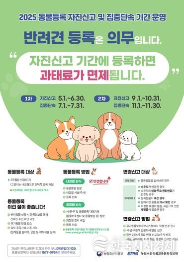 한국시사경제 기동취재팀 | 양천구는 반려동물의 유실·유기 방지와 체계적인 관리 강화를 위해 오는 10월 31일까지 ‘동물등록 자진신고 기간’을 운영한다고 9일 밝혔다.