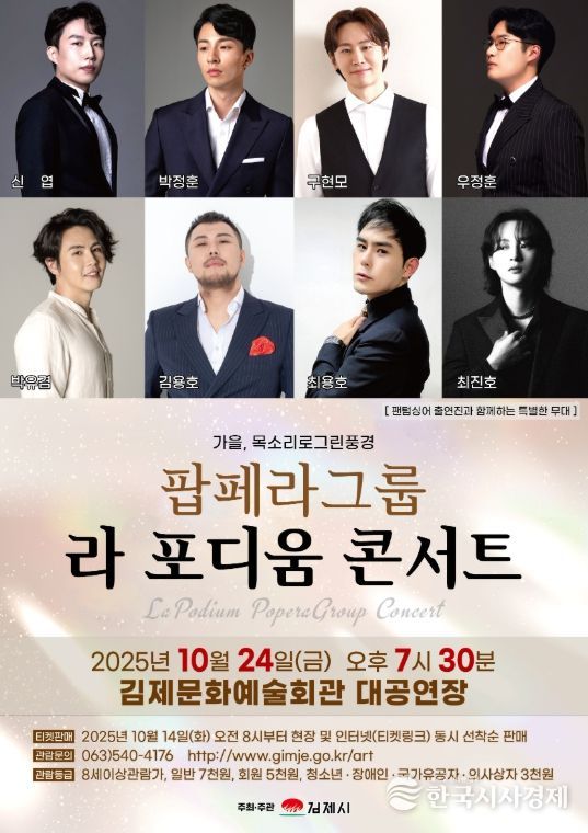 한국시사경제 전북취재본부 | 깊어 가는 가을, 특별한 음악의 향연 팝페라 그룹'라 포디움 콘서트'가 오는 24일 오후 7시 30분 김제문화예술회관 대공연장에서 펼쳐진다.
