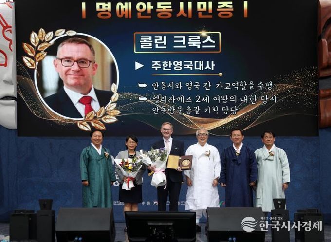 한국시사경제 경북취재본부 | 안동시는 지난 10월 3일 열린 제23회 ‘안동의 날’ 기념식에서 콜린 제임스 크룩스(Colin James Crooks) 주한영국대사에게 명예안동시민증을 수여했다고 밝혔다.