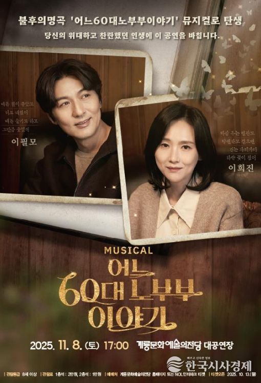 한국시사경제 김태훈 기자 | 계룡시는 오는 11월 8일 오후 5시, 계룡문화예술의전당 대공연장에서 뮤지컬 ‘어느 60대 노부부 이야기’를 공연한다.