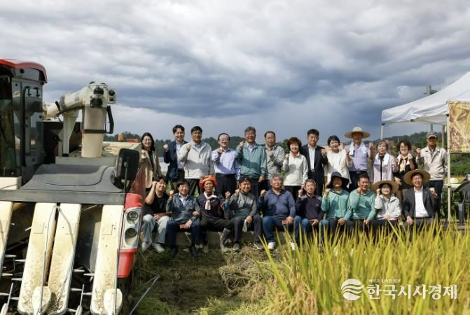 한국시사경제 경기북부취재본부 | 연천군은 10월 2일 연천군농업인단체협회가 주관하여 청산면 장탄리에서 벼베기 행사를 개최했다.