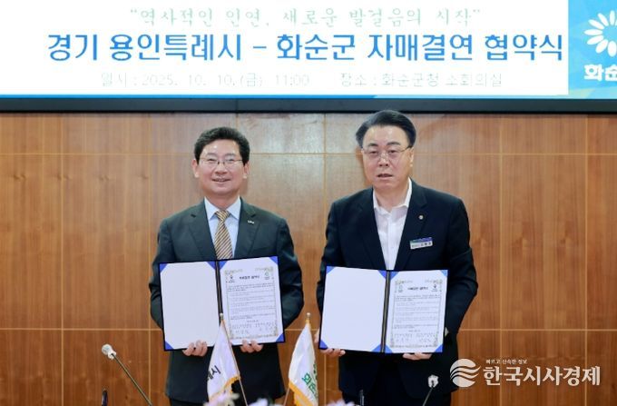 한국시사경제 사회팀 | 용인특례시는 10일 전라남도 화순군과 자매결연을 체결하고 두 도시의 교류와 발전을 위해 적극 협력키로 했다.