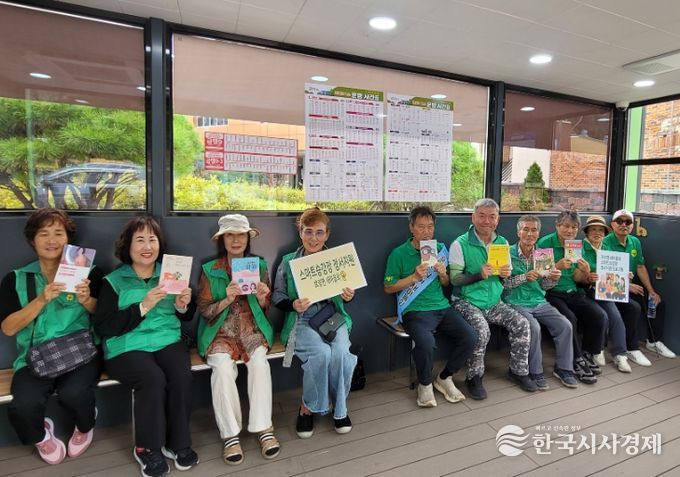한국시사경제 문화팀 | 효령면 새마을회가 버스를 기다리는 주민들을 위해 스마트승강장 내 책꽂이에 도서를 기증하며 따뜻한 정서지원 활동을 이어가고 있다.