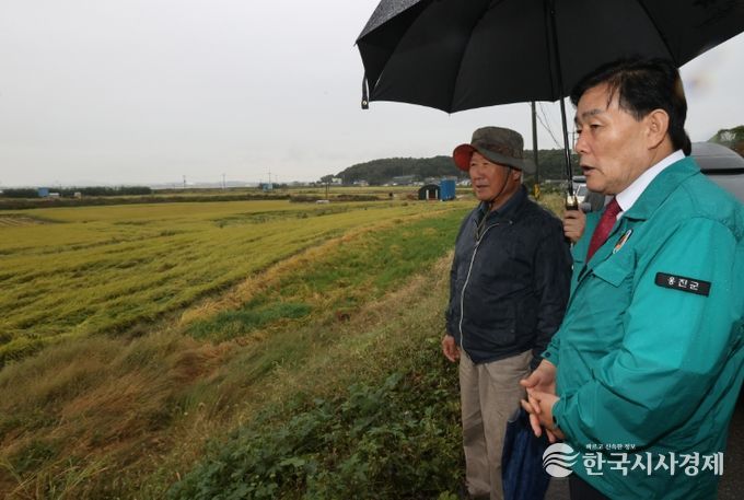 한국시사경제 사회팀 | 옹진군수는 지난 6일에 내린 집중호우와 강풍으로 인해 벼 도복 피해를 입은 북도·영흥면을 방문하여 피해 상황을 점검했다.