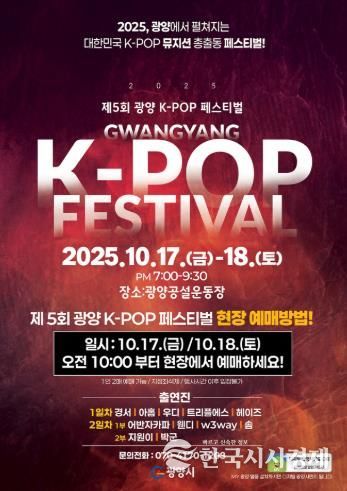 한국시사경제 이정이 기자 | 제5회 광양 K-POP 페스티벌이 오는 17일과 18일, 광양공설운동장 일원에서 전국 청소년 댄스 경연대회와 함께 화려한 라인업으로 성대하게 개최된다.
