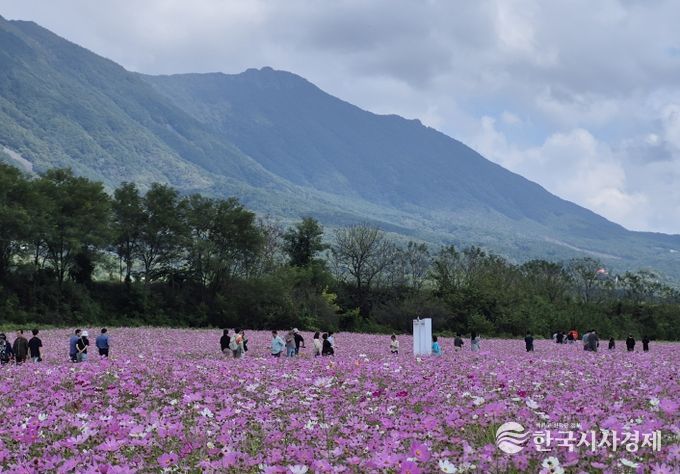 가조온천꽃단지는 연휴 기간 분홍빛․황금빛 코스모스가 만개하며 사진 명소로 큰 인기를 끌었다. 포토존과 커피쿠폰 이벤트, 치유프로그램 체험 부스 운영 등으로 방문객들의 만족도를 높였다.